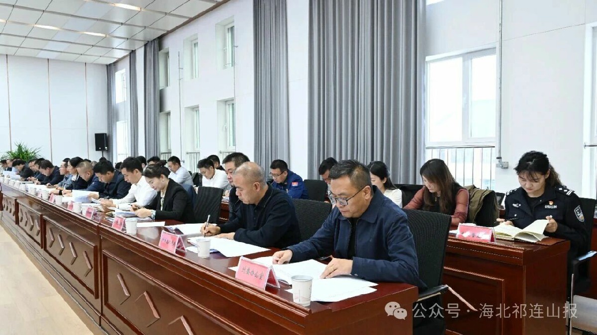 ཚོགས་འདུའི་སྟེང་ནན་གྱིས་བསྟན་དོན། ཁུལ་ཡོངས་ཀྱི་ས་གནས་སོ་སོ་དང་སྡེ་ཁག་སོ་སོས་བསམ་བློ་དང་བྱ་སྤྱོད་ཏང་ཀྲུང་དབྱང་དང་རྒྱལ་སྲིད་སྤྱི་ཁྱབ་ཁང་གི་བཀོད་སྒྲིག་དང་། ཞིང་ཆེན་ཏང་ཨུ་དང་ཞིང་ཆེན་སྲིད་གཞུང་གི་བྱ་བའི་བླང་བྱའི་ཐོག་དོན་འཁྱོལ་ཏན་ཏིག་བྱས་ཏེ་ཁུལ་ཡོངས་ཀྱི་བདེ་འཇགས་ཐོན་སྐྱེད་བྱ་བར་འཕྲད་པའི་ཛ་དྲག་གི་དུས་བབ་ལ་དབྱེ་ཞིབ་གཏིང་ཟབ་བྱས་ནས། “དུས་དང་རྣམ་པ་ཀུན་ཏུ་སེམས་ཁྲལ་བྱེད་པའི”འགན་འཁྲིའི་འདུ་ཤེས་སྟེང་བདེ་འཇགས་ཐོན་སྐྱེད་བྱ་བའི་བྱེད་ཐབས་གནད་ལ་འཁེལ་བའི་སྒོ་ནས་དོན་འཁྱོལ་བྱས་ཏེ་བདེ་འཇགས་ཐོན་སྐྱེད་ཀྱི་མ་མཐའི་མཚམས་ཐིག་བརྟན་སྲུང་བྱེད་དགོས། ཆབ་སྲིད་ཀྱི་འགན་འཁྲི་བློ་བརྟན་འགྱུར་མེད་ཀྱིས་འཁུར་བ་དང་བདེ་འཇགས་ཐོན་སྐྱེད་ཀྱི་རྩ་བཅོས་འགག་སྒྲོལ་གྱི་ལོ་གསུམ་འགུལ་སྐྱོད་དེ་གཞིར་བཟུང་ནས་ཆད་སྐྱོན་དང་ཞན་ཆ་ཕྱོགས་ཡོངས་ནས་འཚོལ་ཞིབ་བྱས་ཏེ། བྱེད་ཐབས་སྔར་ལས་དངོས་ཡོད་དང་བླང་བྱ་སྔར་ལས་ནན་མོ་དོན་འཁྱོལ་བྱས་ནས་གཙོ་གནད་ཁྱབ་ཁོངས་ཀྱི་མངོན་གསལ་དོད་པའི་གནད་དོན་གྱི“སྦྲེལ་ཐག་ཧྲིལ་བོའི”བཅོས་སྒྲིག་བྱེད་ཤུགས་ཆེ་རུ་གཏོང་དགོས། སྐོར་ཞིབ་ལ་བརྟེན་ནས་ལས་སྒྲུབ་སྐུལ་འདེད་རྒྱུན་འཁྱོངས་བྱས་ཏེ་ཀྲུང་དབྱང་གི་བདེ་འཇགས་ཐོན་སྐྱེད་དཔྱད་ཞིབ་དང་གཙོ་གནད་སྐོར་ཞིབ་དང་ཞིབ་བསྡུར་བྱས་ནས་ས་ཁུལ་དང་སྡེ་ཁག་གི་བདེ་འཇགས་ཐོན་སྐྱེད་ཀྱི་ཆད་སྐྱོན་དང་ཞན་ཆ་ཡང་དག་འཚོལ་དགོས། གཅིག་ཤེས་ཀུན་གྲོལ་དང་བརྒྱུད་རིམ་ལྡན་པའི་སྒོ་ནས་ཆད་སྐྱོན་ཞིབ་བཤེར་དང་མི་འདང་ཁ་གསབ་བྱེད་པ། གནད་དོན་བཅོས་སྒྲིག་དམ་འཛིན་ནན་མོ་བཅས་བྱས་ཏེ་གཞི་རིམ་གྱི་འཕྲལ་སྡོམ་དོ་དམ་ནུས་པ་དང་བདེ་འཇགས་ཆུ་ཚད་མུ་མཐུད་དུ་མཐོར་འདེགས་སུ་བཏང་ནས་དཔྱད་ཞིབ་དང་སྐོར་ཞིབ་དང་ལེན་བྱེད་པའི་བརྒྱུད་རིམ་དེ་འགན་འཁྲིའི་མ་ལག་དམ་ཟབ་དང་བཅོས་སྐྱོང་ནུས་པ་ཆེ་རུ་གཏོང་བའི་བརྒྱུད་རིམ་ཞིག་ཏུ་འགྱུར་བར་བྱེད་དགོས། “ཏང་སྲིད་འགན་འཁྲི་གཅིག་མཚུངས་དང་ལས་གནས་གཅིག་ལ་འགན་འཁྲི་གཉིས”དང“དོ་དམ་གསུམ་དང་ངེས་པར་གསུམ”གྱི་བླང་བྱ་དོན་འཁྱོལ་ནན་མོ་བྱས་ཏེ་ས་གནས་སོ་སོ་དང་སྡེ་ཁག་སོ་སོའི་ལྟ་སྐུལ་དོ་དམ་འགན་འཁྲི་དམ་ཟབ་བྱས་ནས་ཁེ་ལས་ཀྱིས་འགན་འཁྲི་གཙོ་བོ་དོན་འཁྱོལ་བྱེད་པར་སྐུལ་འདེད་གཏོང་དགོས། བགྲོད་ལམ་འགྲིམ་འགྲུལ་དང་འཛུགས་སྐྲུན་ལས་བཟོ། རིག་གནས་གནས་སྐོར། གཏེར་རི། ཉེན་ཁ་ཆེ་བའི་རྫས་འགྱུར་དངོས་རྫས། བཟོ་ཚོང་། མེ་ཟོན་སོགས་གཙོ་གནད་ཁྱབ་ཁོངས་ལ་དམིགས་ཏེ་རང་བཤེར་ལྟ་སྐུལ་ཞིབ་བཤེར་བྱས་ནས་ཉེན་ཁ་གནད་ལ་འཁེལ་བའི་སྒོ་ནས་དབྱེ་འབྱེད་དང་འགག་ཟུམ་བཅོས་སྒྲིག་བྱས་ནས་བདེ་འཇགས་བརྟན་བརླིང་འགན་ལེན་བྱེད་དགོས་ཟེར།
