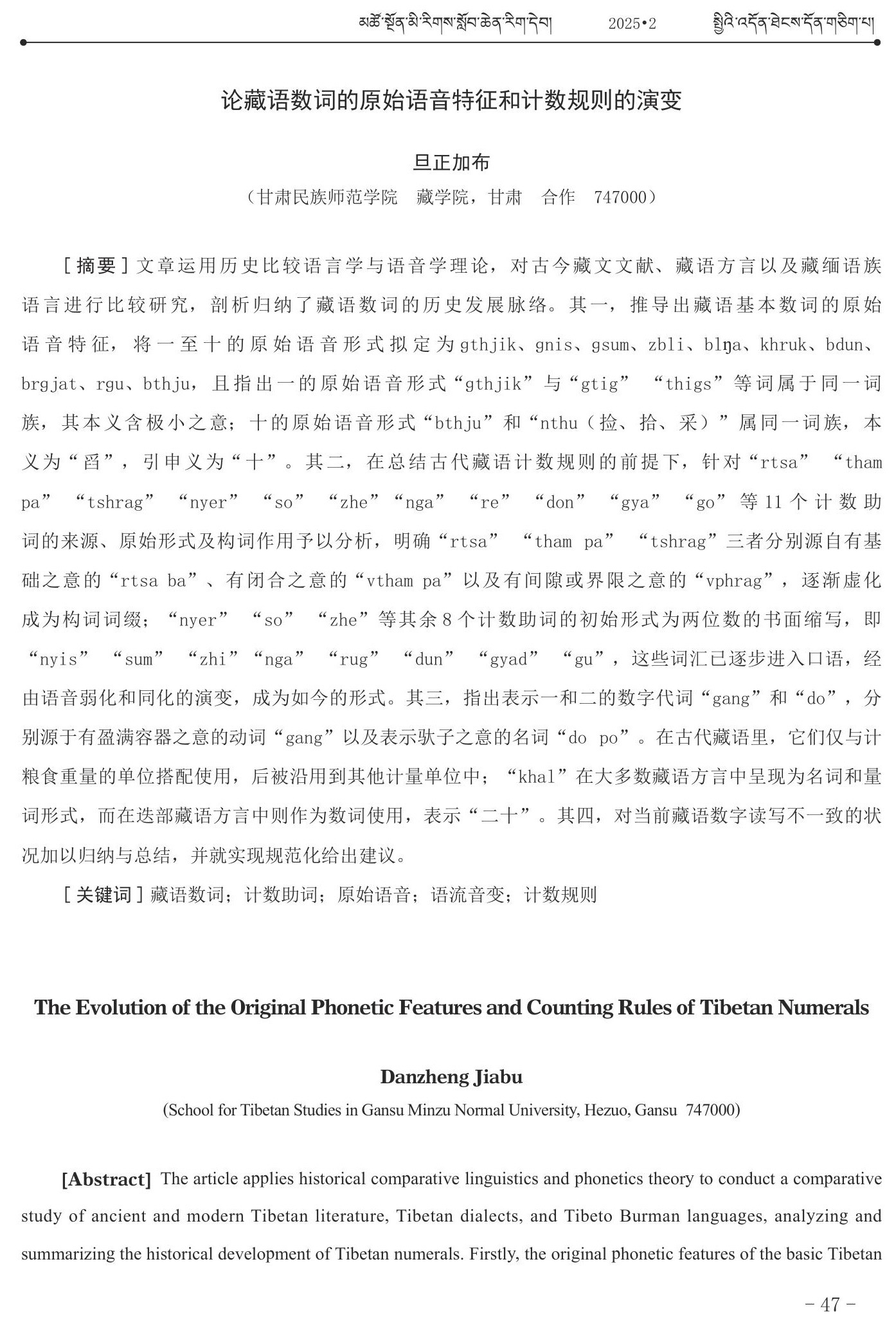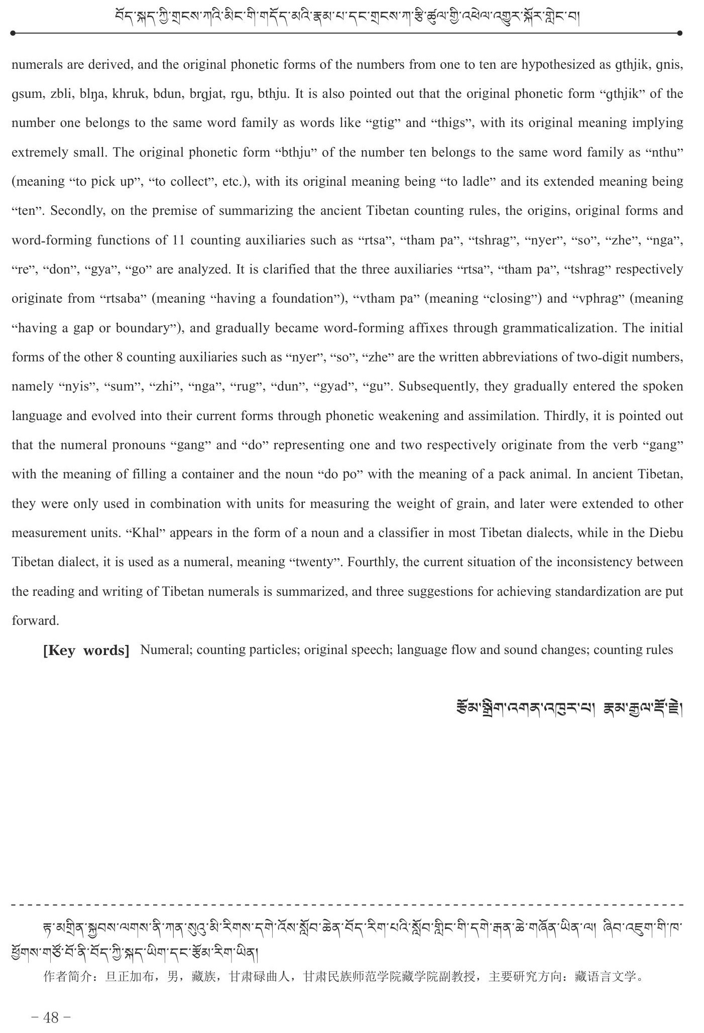 བོད་སྐད་ཀྱི་གྲངས་ཀའི་མིང་གི་གདོད་མའི་རྣམ་པ་དང་གྲངས་ཀ་རྩི་ཚུལ་གྱི་འཕེལ་འགྱུར་སྐོར་གླེང་བ།